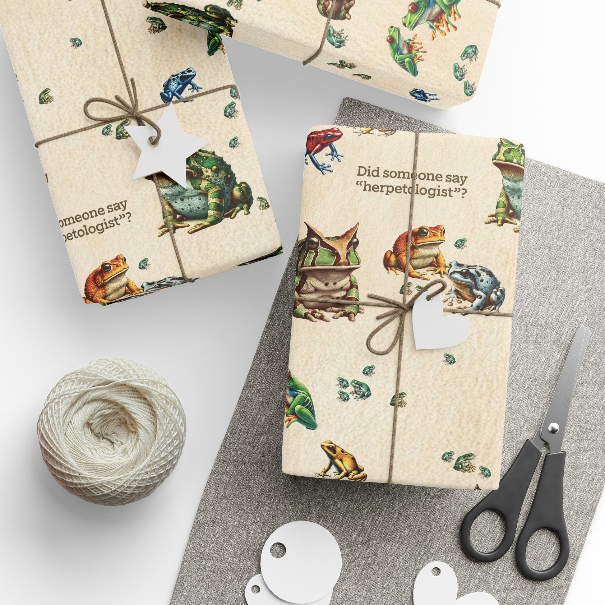 Frog Wrapping Paper | “Did Someone Say Herpetologist?” | Funny Gift Wrap for Science Nerds & Teachers
