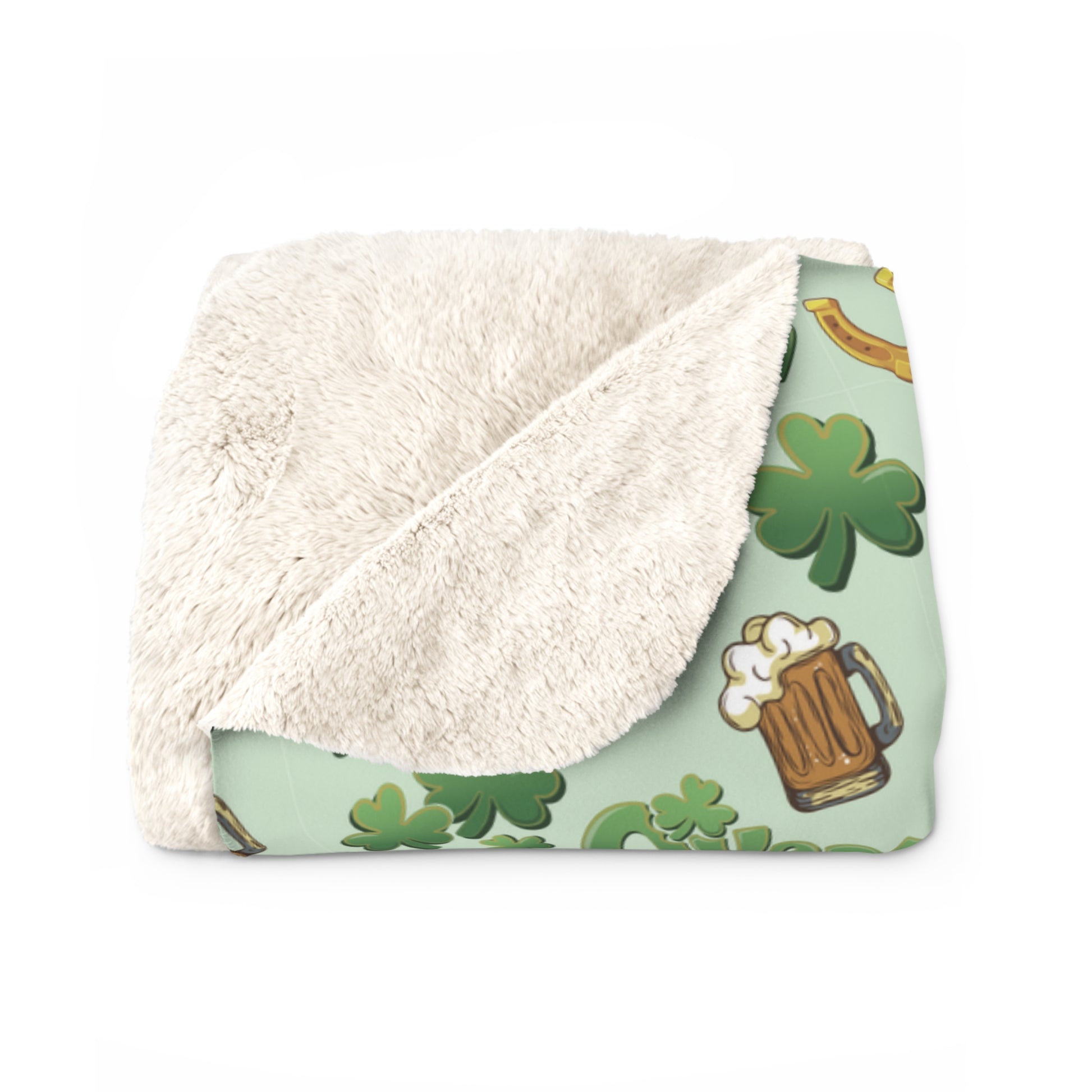 Wrap yourself in warmth and whimsy with our Find the Nerdy Leprechaun Sherpa Fleece Blanket. This plush throw features a vibrant pattern of shamrocks, frothy beer mugs, and lucky horseshoes. Hidden within the design is a playful nerdy leprechaun waiting to be found—a delightful challenge for both kids and adults!