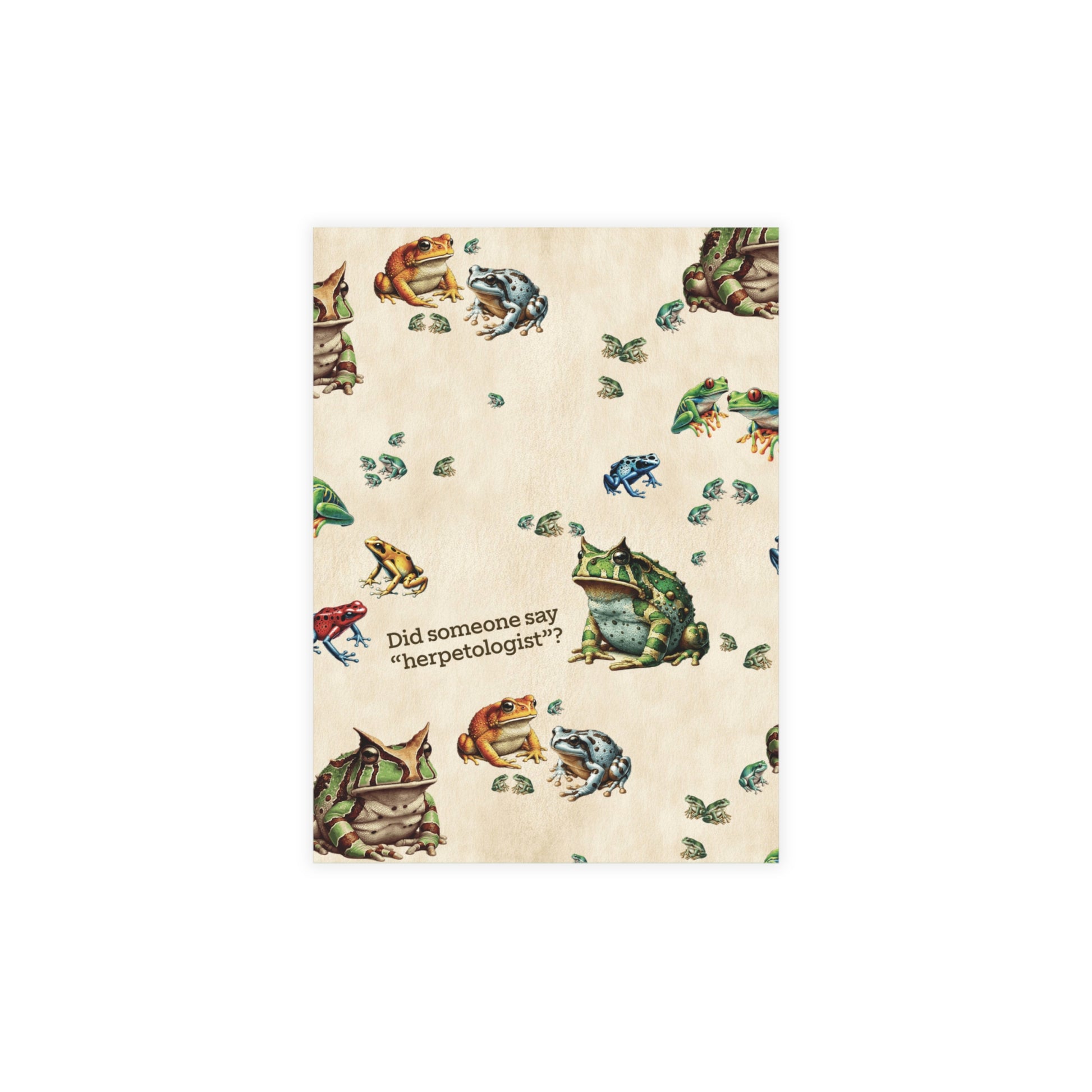 Send science-themed notes with these frog-forward cards featuring eight illustrated amphibians and the phrase “Did someone say herpetologist?". Perfect for teacher thank-yous, classroom notes, or clever correspondence between frog nerds, these high-quality postcards are a functional blend of wit and biology—printed on demand in the USA.