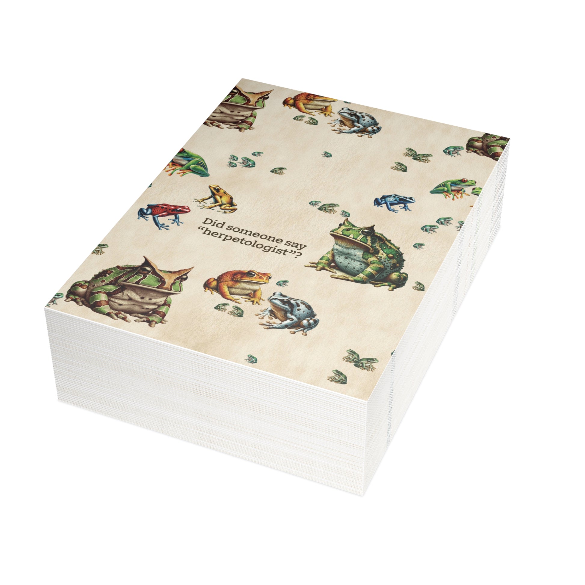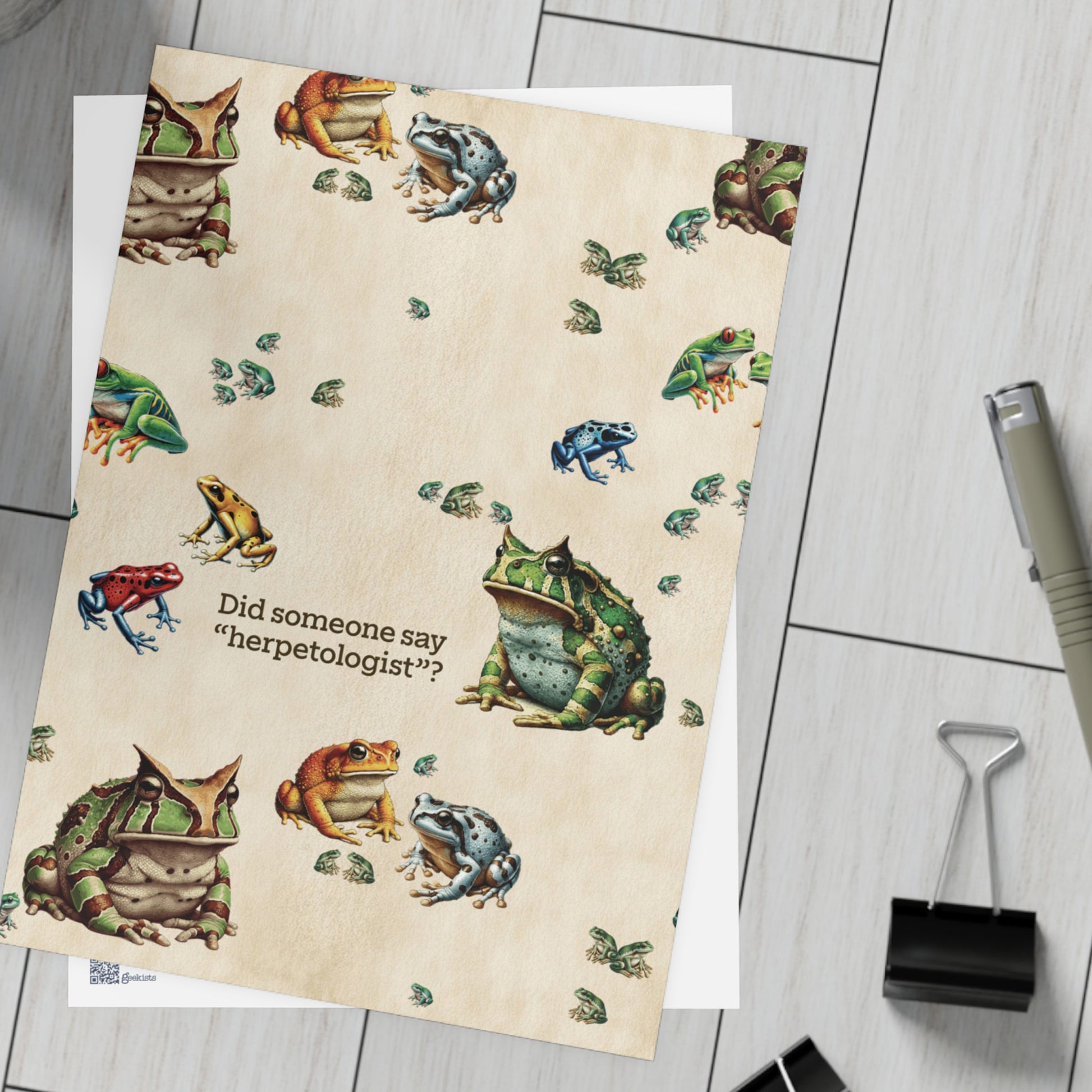 Frog Note Card Set | “Did Someone Say Herpetologists” | Blank Science Cards with Envelopes