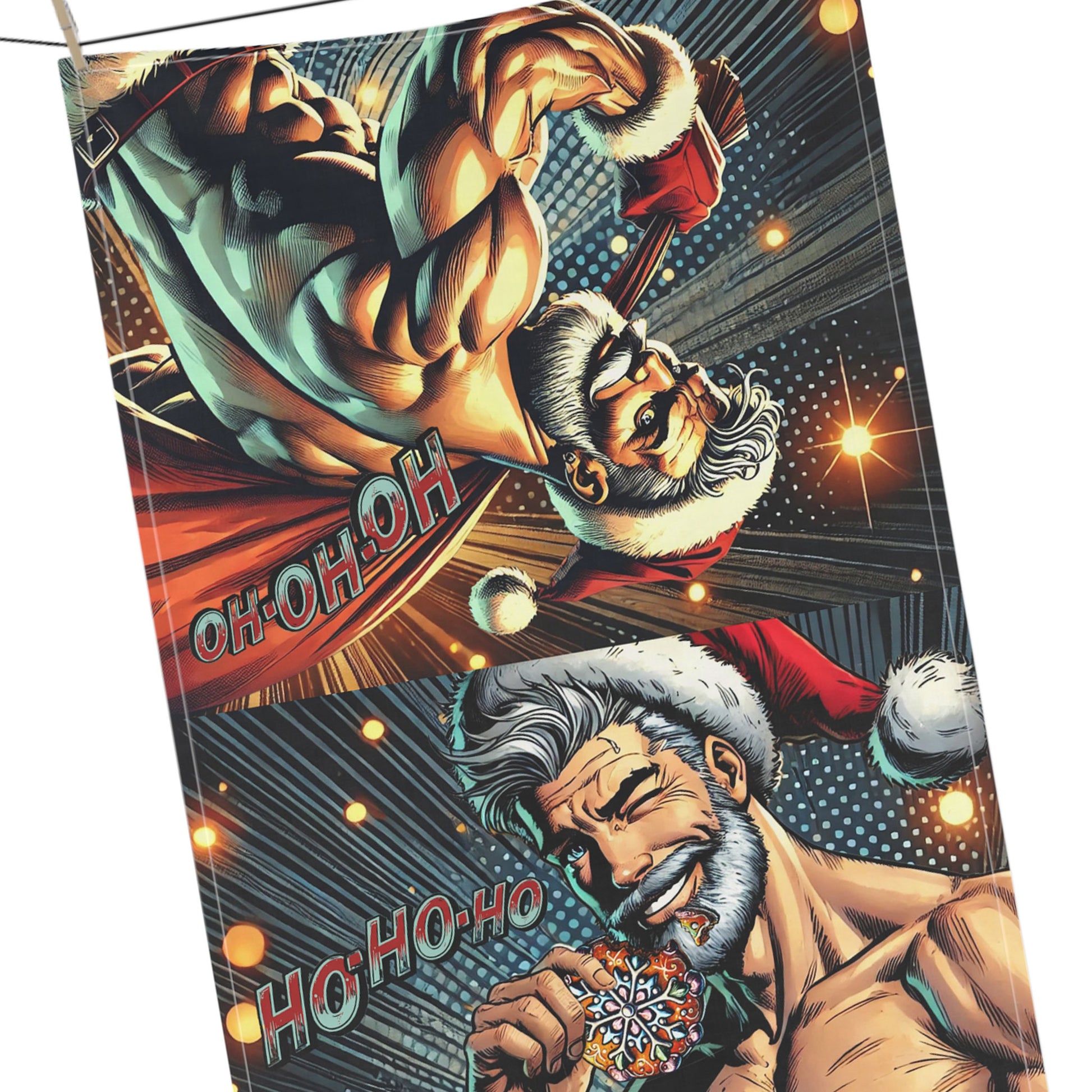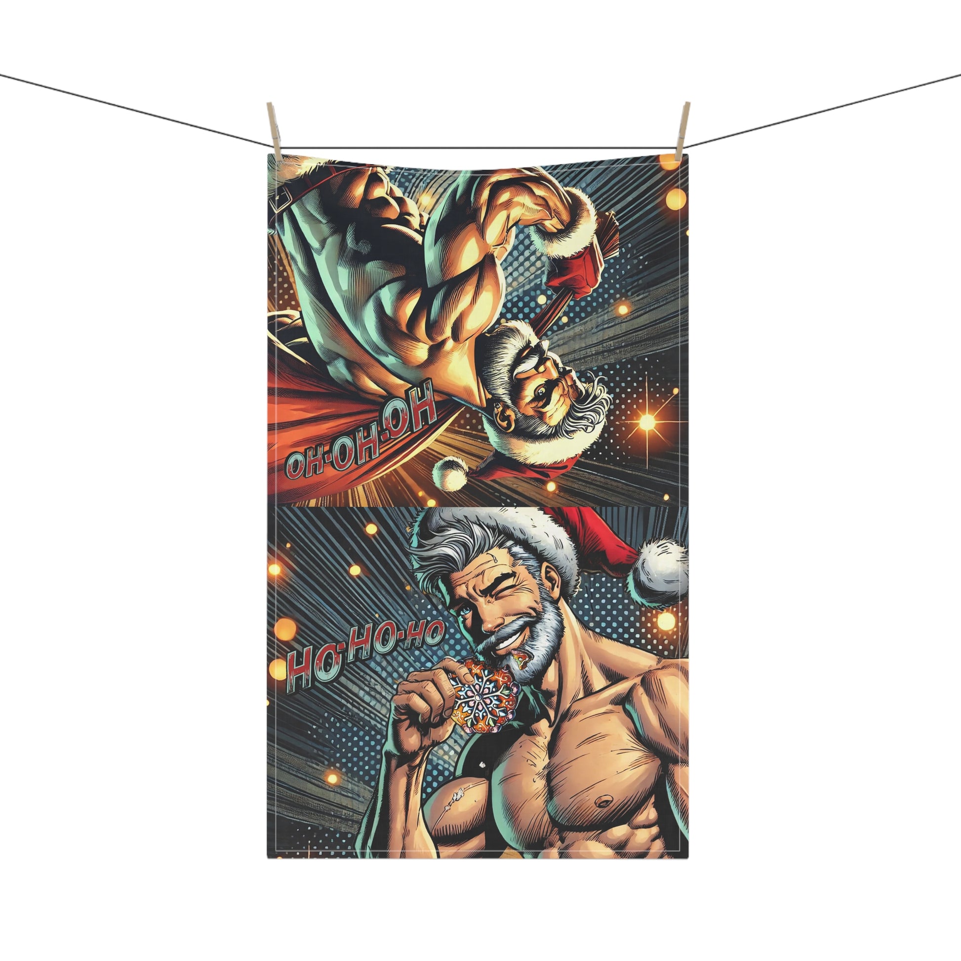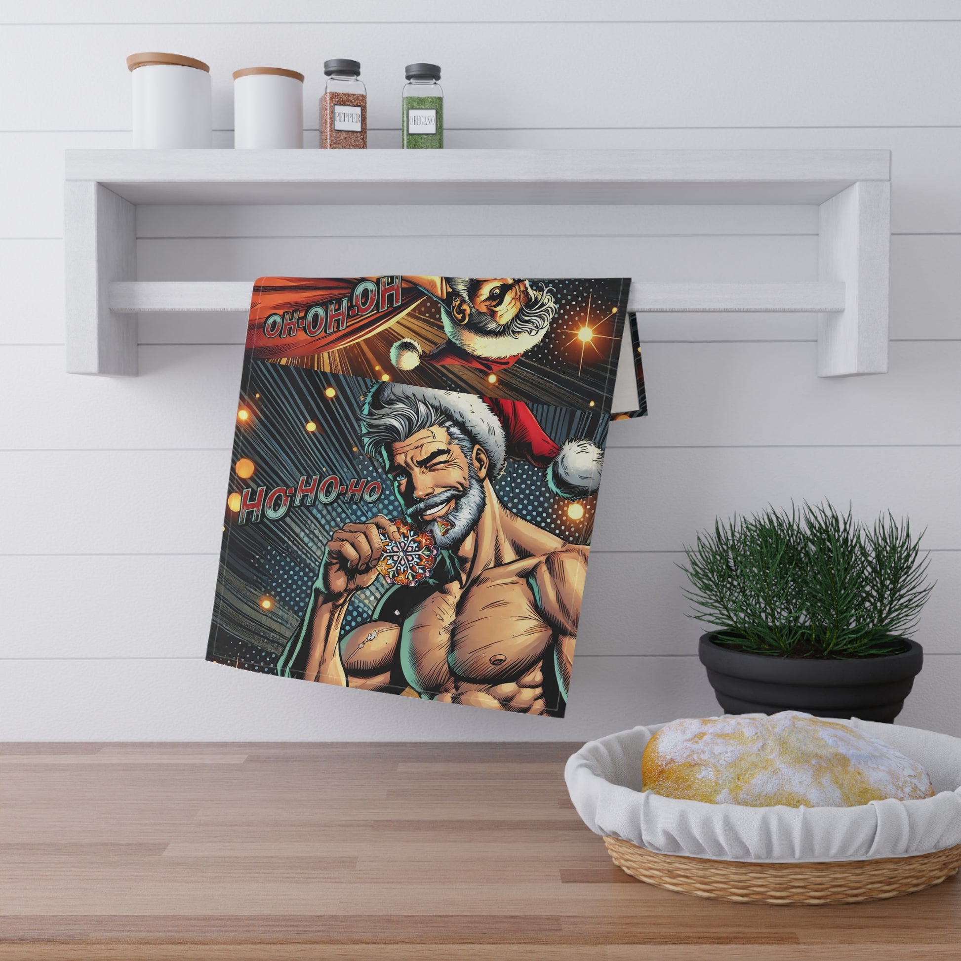 Ho-Ho-Ho! Naughty Santa Claus Kitchen Tea Towel | Sexy Comic Book Holiday Humor