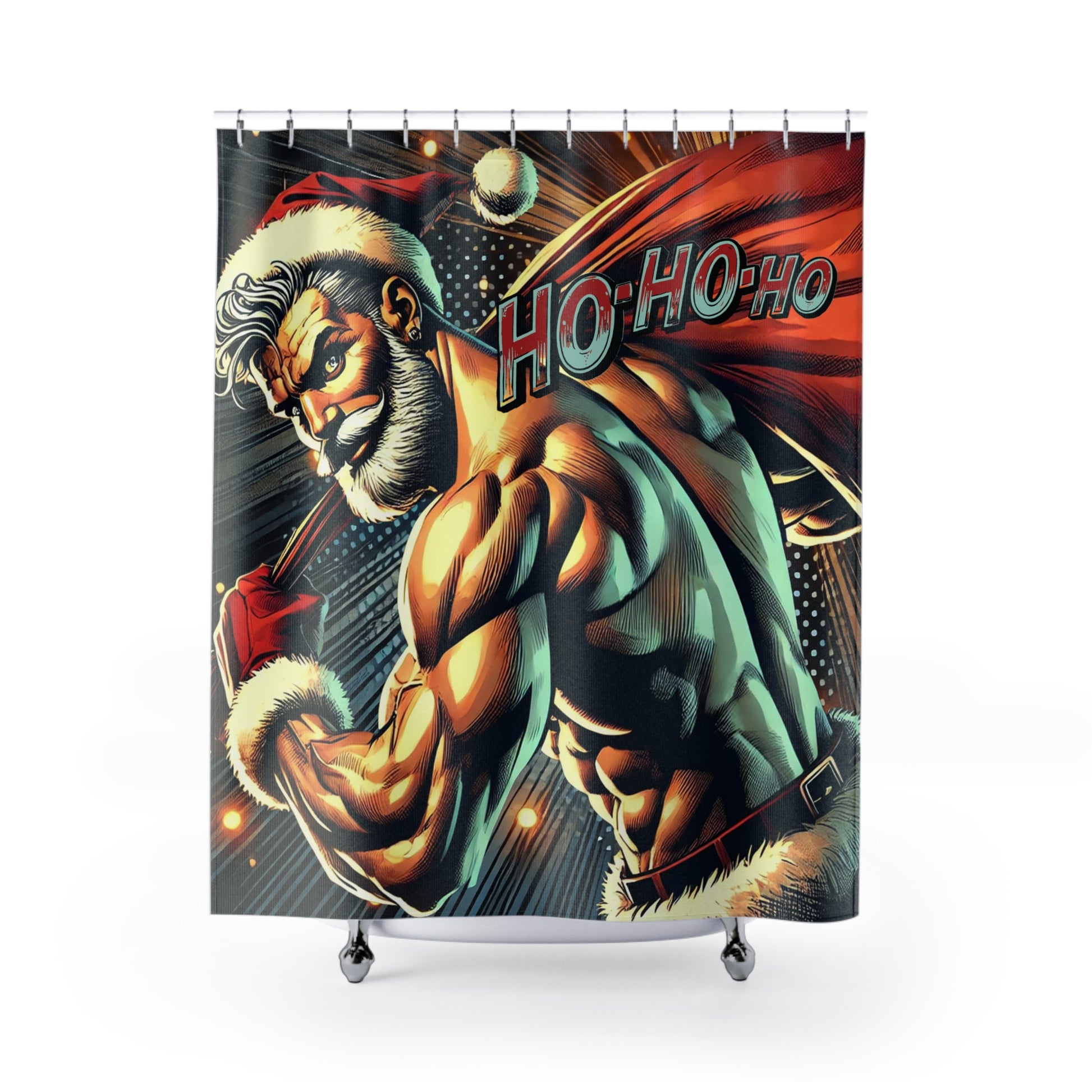 Ho-Ho-Ho! Naughty Santa Claus Shower Curtain | Sexy Holiday Comic Book Bathroom Decor