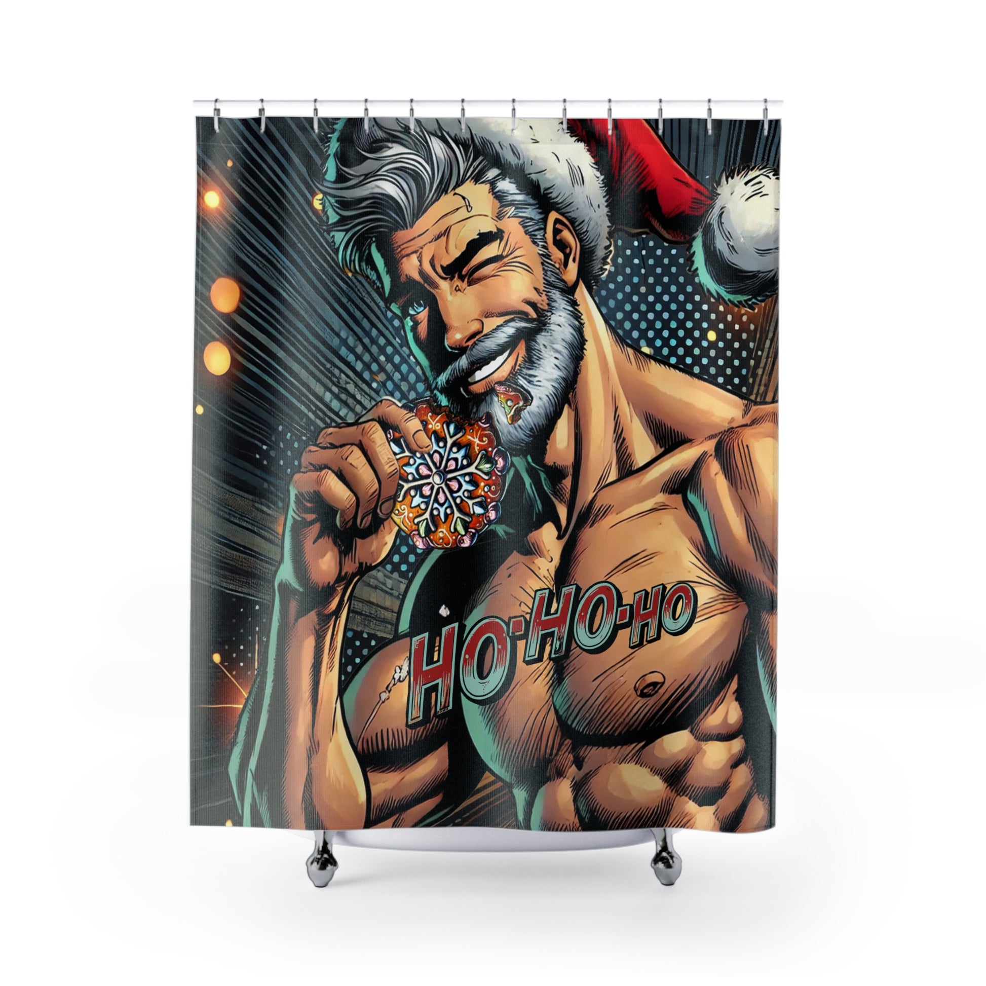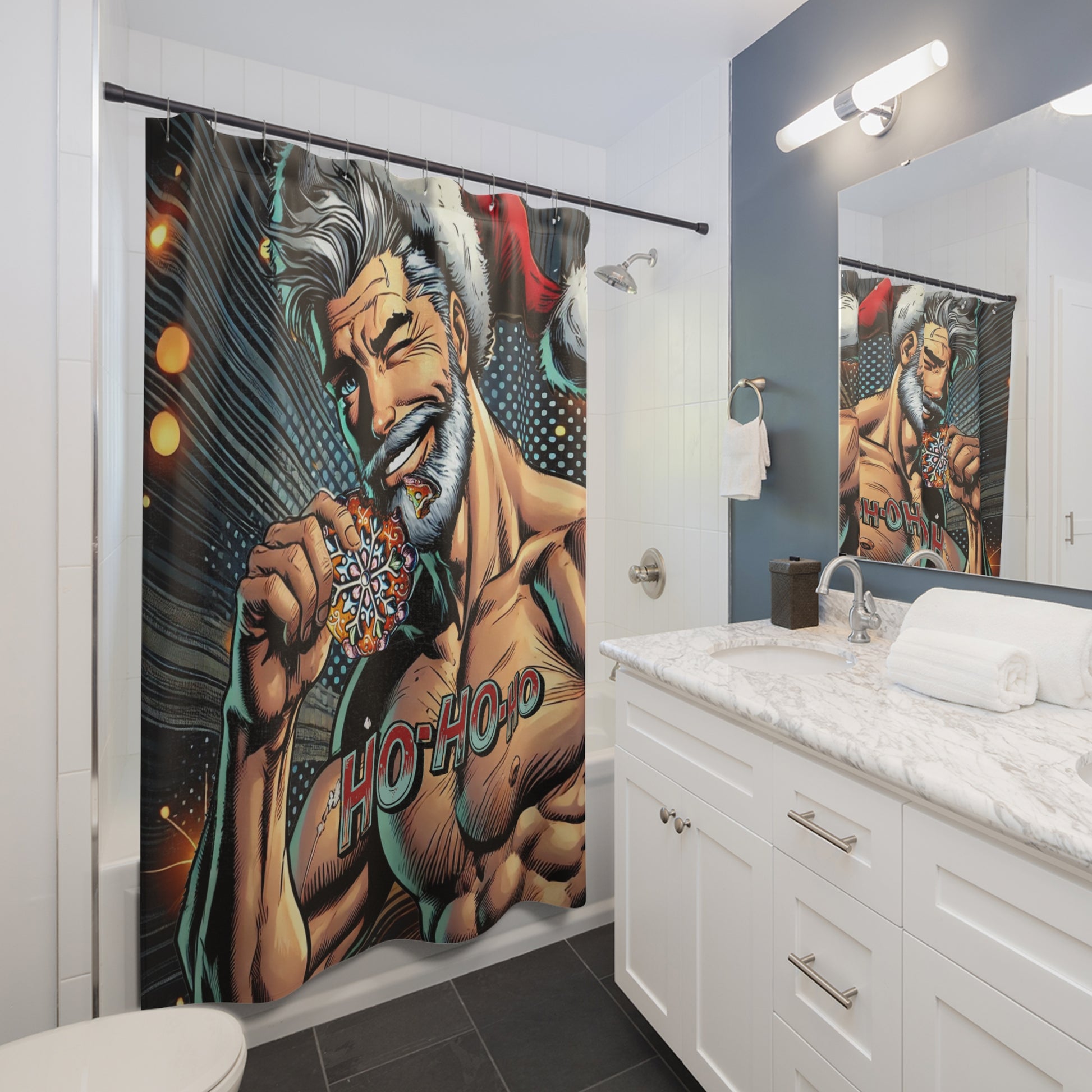 Ho-Ho-Ho! Naughty Santa Claus Shower Curtain | Sexy Holiday Comic Book Bathroom Decor