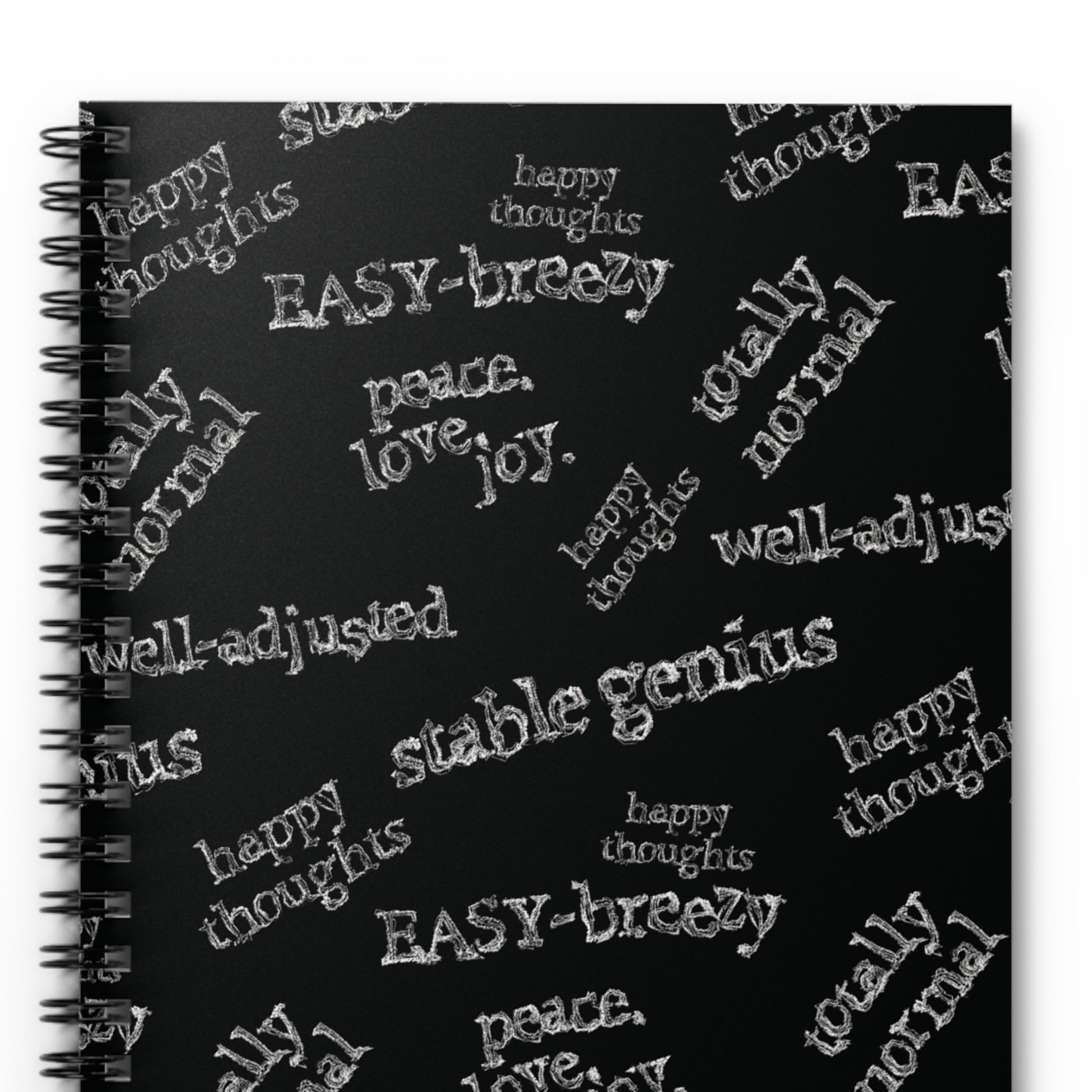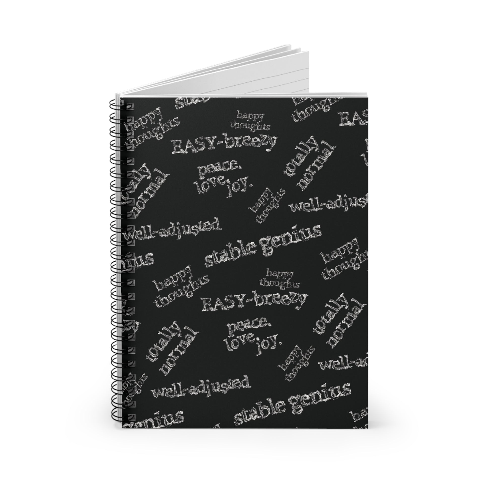 Perfect for capturing petty thoughts, weird affirmations, or organizing the chaos. Each notebook cover showcases sayings like “Stable Genius,” “Well-Adjusted,” “Happy Thoughts,” and more — all with dry, deadpan flair.