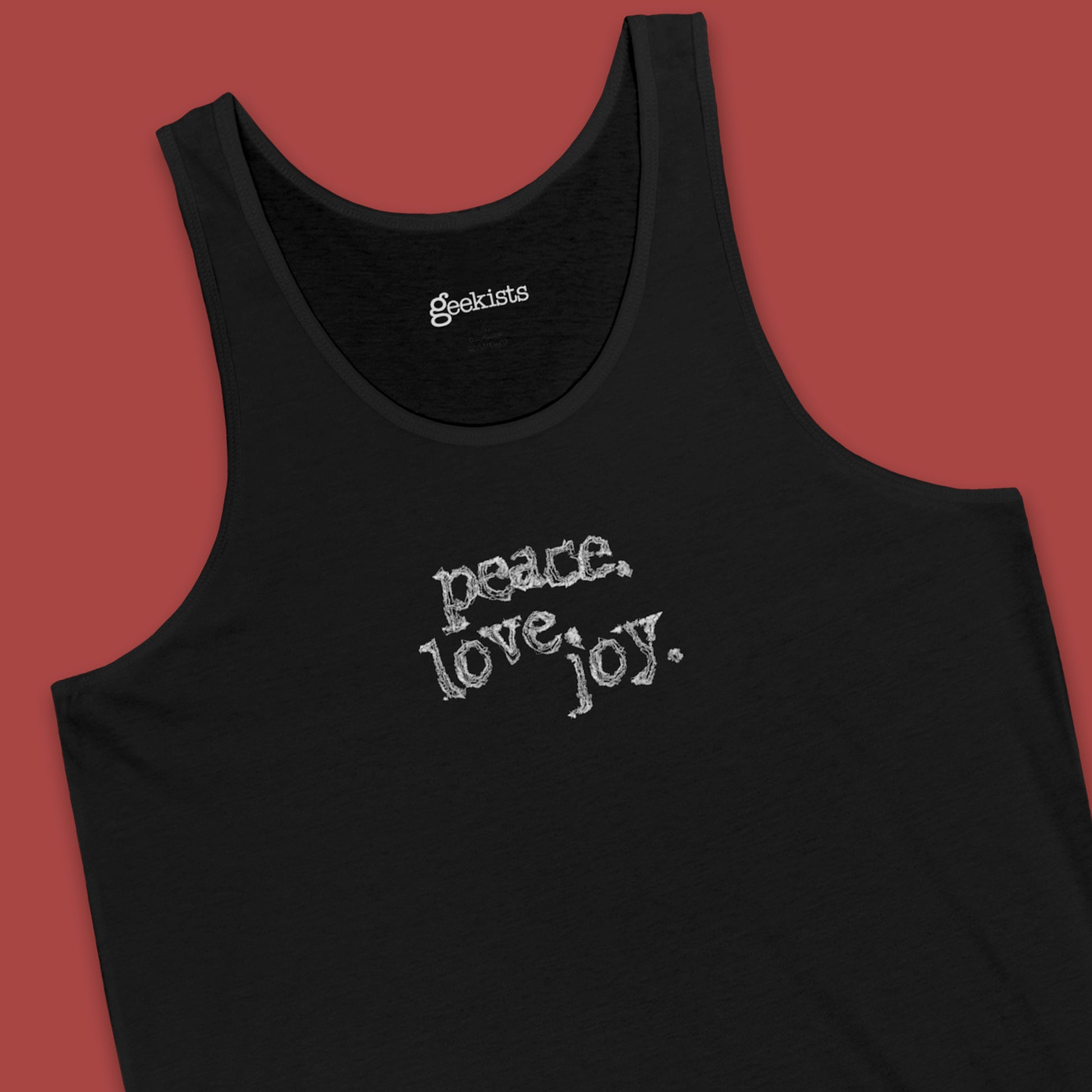 Peace Love Joy Tank Top | Ironic Holiday Sleeveless Shirt